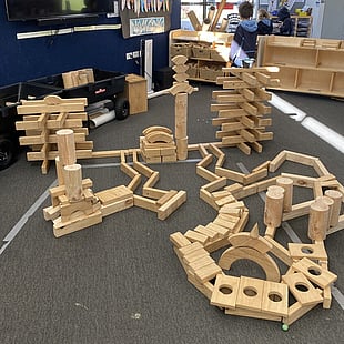 Organization of resources, particularly large loose parts for outside use across all age groups.